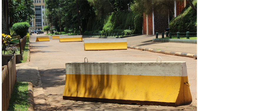 Following the failure to anticipate and interpret the protests, the military police reacted to the mostly peaceful demonstrations with extreme and vicious violence, using pepper spray, plastic bullets, tear gas, and firing grenades indiscriminately at fleeing protesters and bystanders, injuring many (Baker, 2015; Izama & Wilkerson, 2011) . Consequently, the protests escalated; becoming protests against the police’s brutality, the right to demonstrate peacefully, the impunity and privilege of politicians, state’s neglect of the peoples’ needs and political corruption. In fact, Museveni knew that without controlling Kampala, his hold onto power was in balance and for Baker (2015) and Ssemuju (2012) , a city that had consistently voted against him; one of the fronts to control it was security. Rather than increasing a sense of security within newly built and regenerated places, the new focus of police policy encourages the formation of new governmentalities of insecurity and fear.