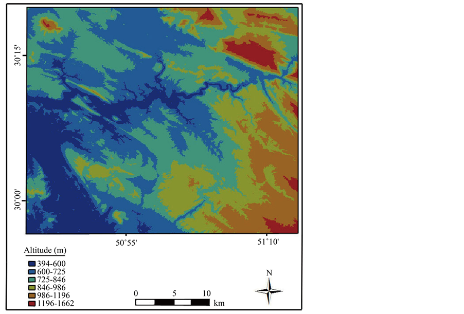 sis of the Chamshir dam area. Furthermore, in order to 3D analysis of geological structures in the area, a detailed Digital Elevation Model (DEM) has been constructed, using digital topographical maps. As well, using the DEM and geological maps, 3D Models of the area have been constructed (Figure 2). Then, based on these models, all the acquired fracture traces data were integrated in Geographic Information System (GIS) environment by using Arc GIS software. Using the hydrologic modeling functions in ArcGIS, it is possible to obtain the direction of surface water flow, slope value and aspect from the filled DEM (Figure 3). A Digital Elevation Model is used to determine which cells flow into other cells (the flow direction). However, if there are errors in the digital elevation model, using hydrologic analysis functions, it is possible to identify them and fill. The flow direction can obtain from this depressionless elevation model. In this study we have used 10 m grid cell DEM of Chamshir Dam. Its projection was the UTM zone 39N. The DEM was derived from the contour lines of the 1:25,000 topographic maps with 10 m contour intervals.