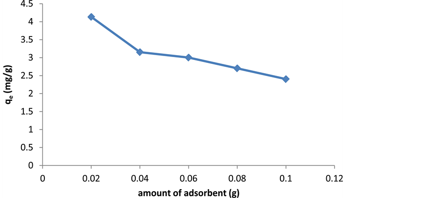 The concentration of adsorbent has a large impact on the adsorbent dosage in a way that increasing the concentration of biosorbents usually decreases the adsorbent dosage which may be due to the complex performance of several factors. At high concentrations of adsorbent, there is not enough adsorbent for complete coverage of solutions with the ability for adsorption on biosorbents which usually leads to low loading of adsorbent. The interference between the bond places due to the high concentration of biosorbents will reduce the loading capacity [14] [15] . Figure 5 shows the effect of adsorbent dosage on cerium adsorption.