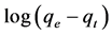 where Kf is Freundlich constant and n is adsorption intensity. Freundlich isotherm constants can be achieved by drawing changes of logq to