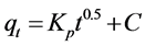 where qt is adsorption dosage at time of t (mg/g), Kp is intraparticle diffusion rate constant ((mg/g)∙min−0.5), and C is intraparticle diffusion constant (mg/g) [32] . Intraparticle diffusion constant can be achieved by drawing changes of qt to t0.5 (Figure 13 and Table 2).