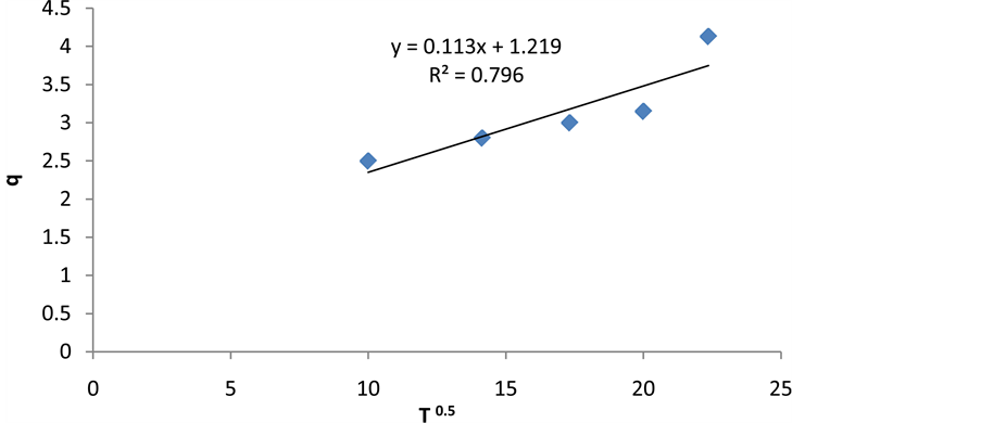 This model is based on the influence of molecules adsorbed to places of the adsorbent in the porosity. Mathematical expression of intraparticle diffusion model is as follows: