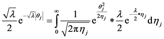 In the following, we explain how we implemented a fully Bayesian hierarchical model and prior distributions. In the continuation of step one, in order to set up a fully Bayesian hierarchical model, we will use an independent double exponential prior distributions on