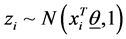 In this formula Φ−1 is the inverse of cumulative distribution function of standard normal distribution. In order to be able to find the posterior distributions of parameters, we need to integrate the likelihood function multiplied by joint prior distributions of all parameters. However, the model with the current configuration makes the integration intractable. Thus, following [34] , “n” independent latent variables