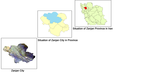 There has been growing need for accurate assessment of urban growth so as to foster sustainable urban development strategy [9] . The recent urban transformations produced in cities indicate the need to propose new theoretical and methodological approaches in physical planning [10] . Based on the idea of complexity, it is required to integrate, in the analysis, multiplicity of interrelated factors involved in urban development [10] . In this line of thinking, theoretical and methodological approaches on physical planning to account for the complexity of urban dynamics are required. The understanding of the contemporary city requires a combination of micro and macro perspectives, integrating the multiplicity of interrelated factors involved in urban development that can provide alternatives to assessment decisions that guide intervention policies [11] . Assessment of ecological potential means objectifying the potential of the land in the form of executable applications and expectations [12] . Zanjan city is the case study in this research, which is used for assessment of ecological potential for urban development by in this area by using Analytical Hierarchy Process (AHP) and overlaying maps for comparison and the establishment of urban development, design by a mathematical model in geographical information system. Natural conditions of the region are facilitated, in particular Zanjan plain and communications as a potential part of the industry in this area. On the other hand, high levels of underground aquifers close to surface water resources of the limiting factors for the growth and development in this area. The results of this study can be used to analyze the current situation of urban land and services in this area and the establishment of new industries and establishing industrial location.