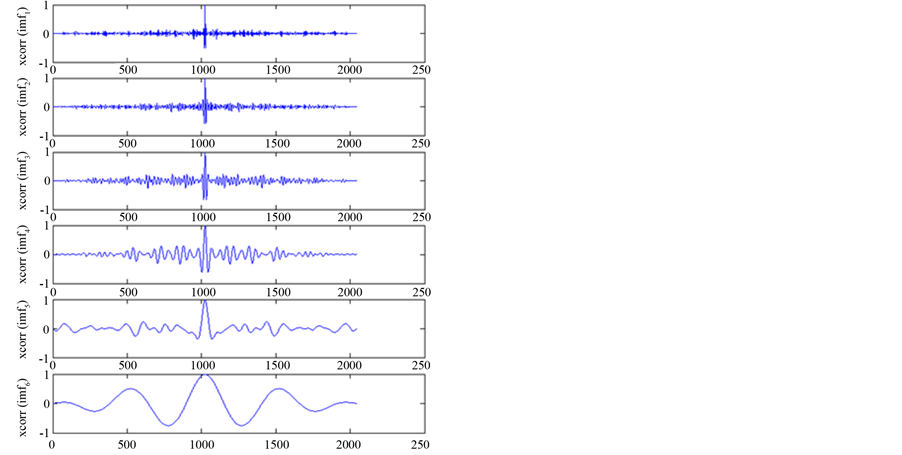 On the EMD decomposition of IMF, calculation of the various components of the autocorrelation function x corr (imf), in Figure 3. According to the random noise of the autocorrelation function to the statistical proper-