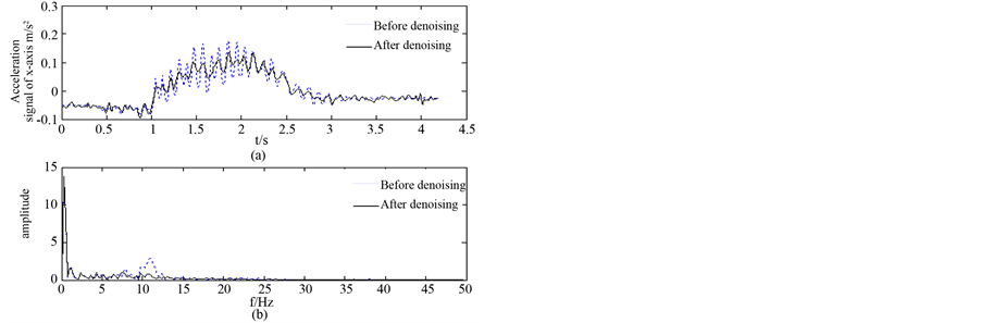 Figure 6. Waveform and frequency spectrum of Y axis acceleration signal before and after denoising.