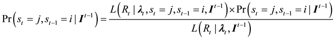 time-varying covariance matrix. In Equations (1e) and (1f), the superscript symbol represents the regime shift from i to j. In short, the range-based MS-DCC model is composed of the conditional autoregressive range (CARR) model for the conditional variance process and the Markov-switching approach for the conditional co- variance and correlation case.