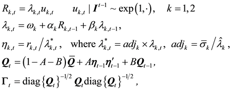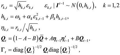 3) Return-based DCC: A classical time-varying correlation model proposed by Engle [1] , which can be shown as: