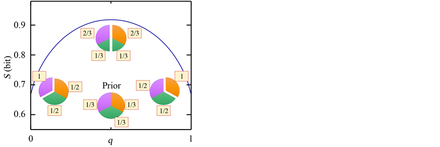 spectively. It is worth noting that Bayesian approach yields the maximum entropy value of q, which corresponds to the rational strategy for Monty. We summarize in Table 1 extracted values of conditional entropy for different