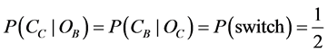 problem [1] - [11] . However, Monty is not compelled to “coin-flipping”. In reality, Monty should adopt strategies to reduce the contestants winning chance. For Bayesian inference, although the partition of the probability space argument has been elaborated on before, there is a striking lack of analysis on its underlying ramifications. Converting Bayesian inference (the probability of that initially selected door concealing the car is invariant of the event of Monty opening a goat-yielding door) into conditional probability formalism, we have: