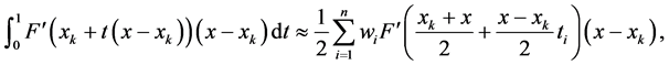 In Section 2 of this paper, we propose a group of two-step iterative methods with third-order convergence by Gauss-Legendre quadrature formula [12] :