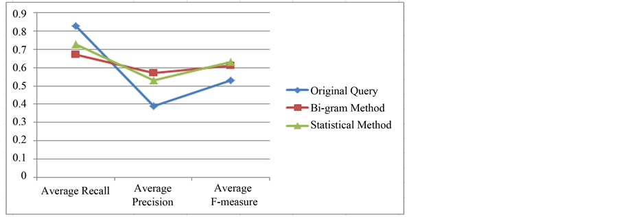Figure 6. Performance graph of original query, bi-gram and statistical methods.