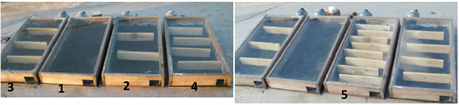 Figure 5. Collector models with installed baffles: Model-1: ordinary collector, Model-2: collector with 2 baffles, Model-3: collector with 3 baffles, Model-4: collector with 4 baffles and Model-5: collector with 8 baffles.