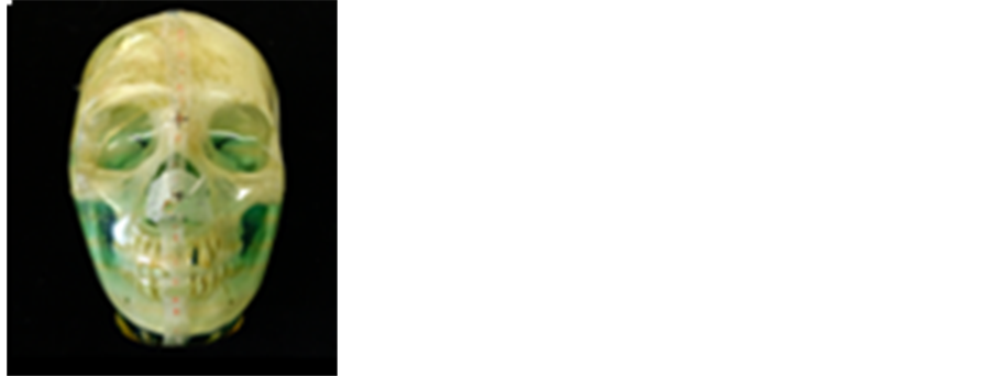 A diagnostic head phantom was used in the preclinical study. The components are made from tissue simulating resins that mimic X-ray attenuation properties of human tissues. The phantom detail includes 3-D anthropomorphic anatomy comprising brain, bone, larynx, trachea, sinus, nasal cavities and teeth (Figure 2).