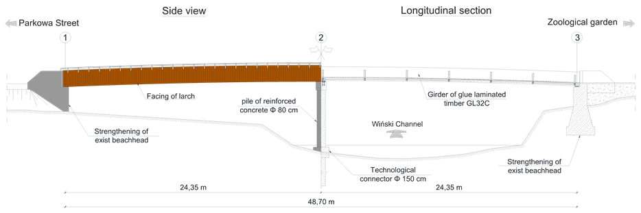 Figure 9. The main elements of footbridge in Opole at Bolko Island.