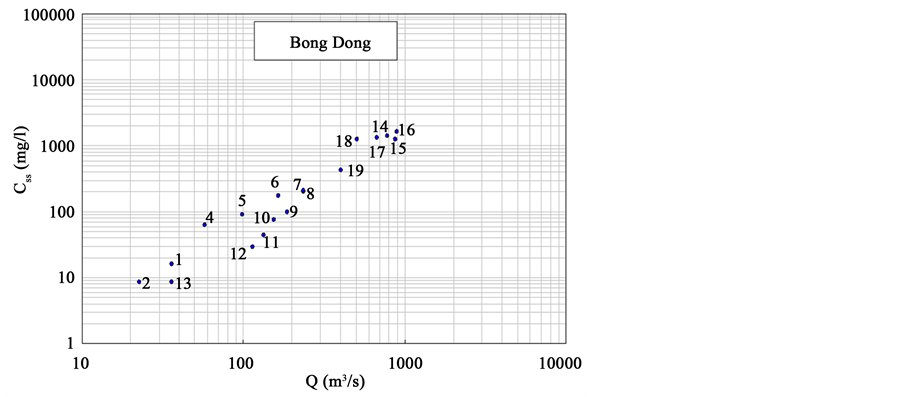 material was collected once before the flood season. Also, as there was no auxiliary staff gauge for measuring water surface slope, the equilibrium bed slope of the Yongbong Bridge (MOCT [1] ) was used.