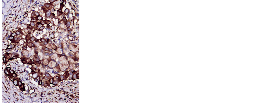 The early invasive boundaries of most tumors are defined as the breakthrough of the basement membranes. However, there are still some limitations when using basement membrane staining to observe cancer breakthrough, because local inflammation usually leads to blurry or disappeared staining of basement membranes in intraepithelial tumors. Some researchers use interstitial changes after breakthrough of basement membranes to judge the invasion of intraepithelial tumors. For example, the interstitial cells in bronchioloalveolar carcinoma [9] , in situ breast cancer [10] [11] , or in situ colon neuroendocrine carcinoma [12] have positive expression of CD34. However, tumor interstitial cells show negative expression of CD34 after development into metastatic tumor [10] [13] . After epithelial tumors break through basement membranes, tumor cells develop new markers that attract attention from researchers. Although efforts have been made, few ideal markers are already found [14] - [16] . Therefore, the diagnostic means for the early invasion of tumors is still hematoxylin and eosin staining. In clinical diagnosis of lung adenocarcinoma, accurate classification of early invasive foci has become an important problem since 2011 IASLC/ATS/ERS meeting. The main difficult point lies in the unclear boundary between adherent adenocarcinoma and invasive alveolar adenocarcinoma. Therefore, it is difficult to accurately identify early invasive foci of lung adenocarcinoma using only hematoxylin and eosin staining.
