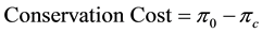 Since the farmers possess property right over their farmland and government is responsible for the improvement of the farmers’ livelihood, the forgone opportunity cost of those farmers who are enforced to grow these landraces should be compensated. The foregone opportunity cost is the difference in net revenue (net profit), before and after the enforcement of the constraints. This can be calculated as: