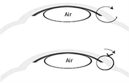The presence of AC IOL, prior failed PK, minimal or absent iris-lens diaphragm and glaucoma drainage devices have been examined as risk factors for higher rates of graft dislocation. In cases where the AC IOL is not the cause of endothelial decompensation and the depth of the anterior chamber is adequate, an intraocular lens exchange is not required [10] - [12] . As reported, DSAEK in the presence of a well-centered AC IOL and AC IOL-to-endothe- lium depth greater than 3 mm, resulted in no significant difference in cell loss compared with DSAEK cases in the presence of a posterior chamber intraocular lens [10] [11] . In such cases, the DSAEK procedure becomes more challenging, as it is difficult for an adequate air bubble to remain in the anterior chamber without escaping into the vitreous cavity, while the presence of an intraocular lens in the anterior chamber interferes with surgical handlings.