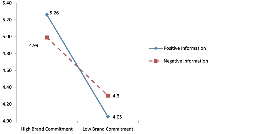 Different from the high brand commitment consumers, low brand commitment consumers haven’t developed strong psychological connection with the brand. When exposed to negative information about the target brand, low brand commitment consumers seldom suffer the cognitive dissonance. Faced with the conflicting information, unlike the high brand commitment consumers tending to focus on positive information, low brand commitment consumers are more rational and they think negative information is more attractive and more interpretable (Herr et al., 1991) [18] . This is called negative bias effect which can inhibit low brand commitment consumers from selecting the positive information. Thus: