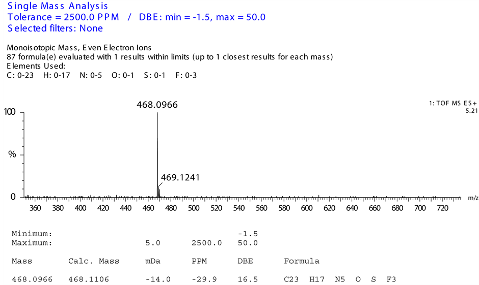 1) Monoisotopic mass with even electron ions (m/z: 468.0966 (M + H));