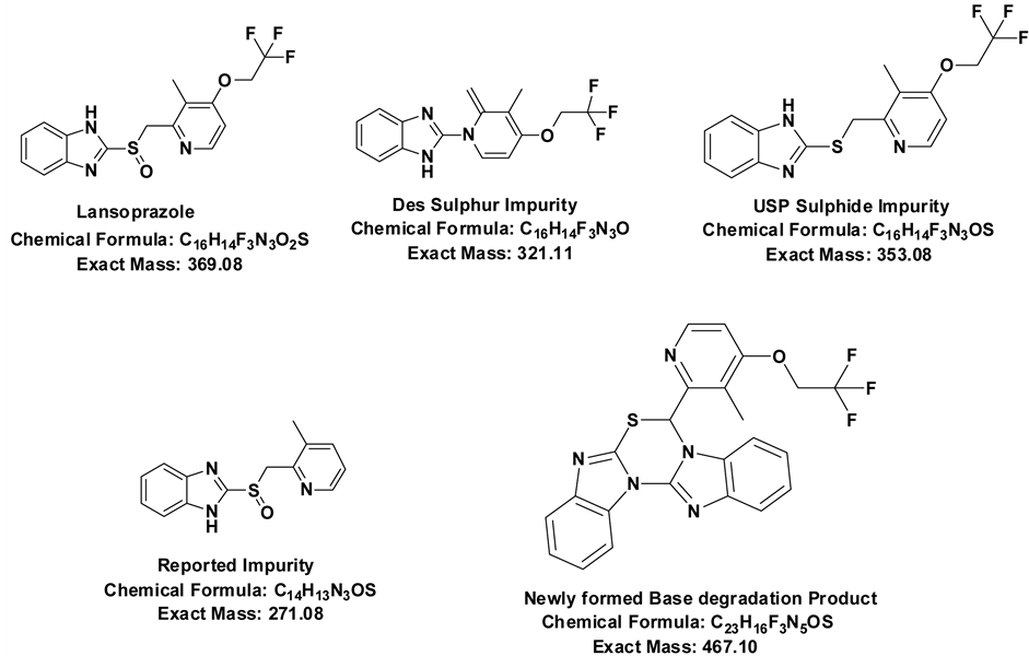 - Ramulu, K., Rao, B.M. and Someswara Rao, N. (2013) Identification, Isolation and Characterization of Potential Degradation Product in Lansoprazole Drug Substance. Rasayan Journal of Chemistry, 6, 274-283.