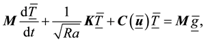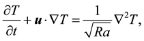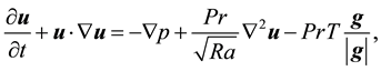 With the Boussinesq approximation the fluid is considered as incompressible. The mathematical model includes the advection-diffusion temperature equation. Therefore the buoyancy term in the momentum equations incorporates the influence of the temperature field. The non-dimensional Boussinesq equations read