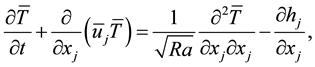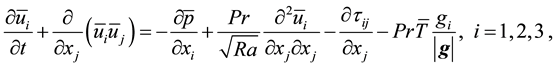 In this section we present the LES Boussinesq equations to get acquainted with the filtering procedure and the LES modeling. For the LDC case, the LES NS equations are an isothermal subset of the Boussinesq equations as the model does no longer contain the buoyancy term in the momentum equations and the temperature equation.