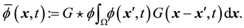 The filtered variables denoted by an overbar are computed as a convolution with a filter kernel G. If we filter the variable