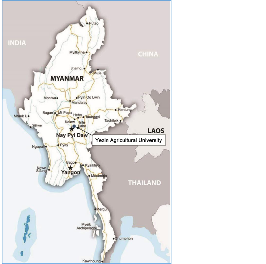 Figure 1. Location of experimental site in Yezin Agricultural University, Nay Pyi Taw.