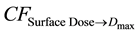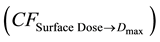 The calibration curve of EBT2 films is presented in Figure 4. While, in Table 1 the conversion factors of surface dose to maximum dose