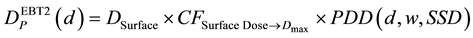 Finally, the dose at the point of interest (d) inside the phantom or patient is given by the following expression: