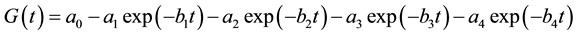 where G(t) is the ghosting correction factor as a function of irradiation time t.