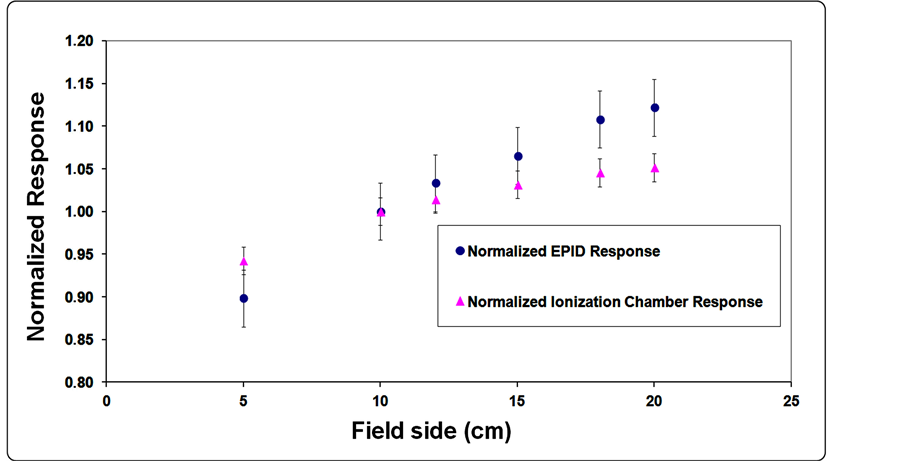 Finally, investigating the EPID response under attenuation conditions the attenuation factor was introduced. It was found that for the same attenuator thickness the attenuation is slightly increased with increasing field size because of the increasing scattered photons.