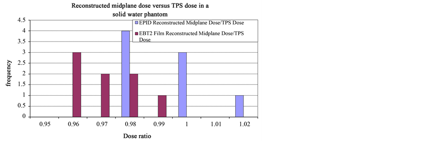 Figure 6. The distribution of the ratios of the EPID reconstructed mid-plane doses