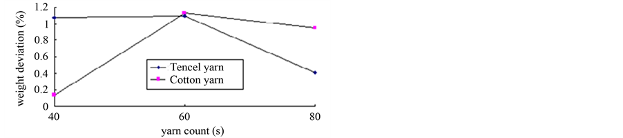 Figure 1. Tencel yarn and cotton yarn weight deviation.