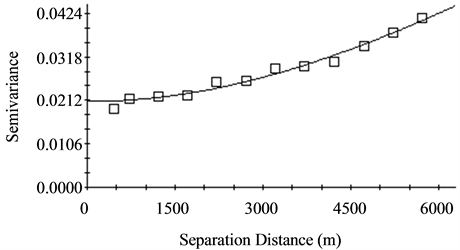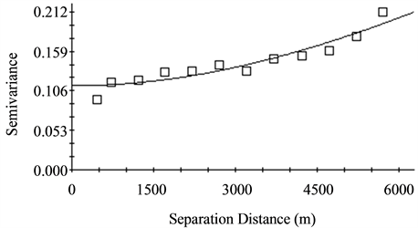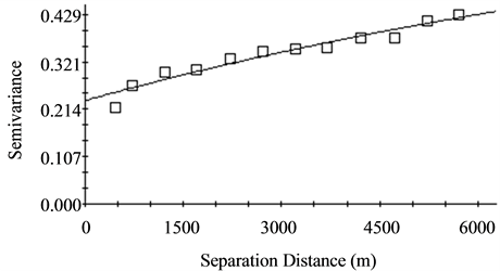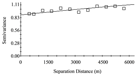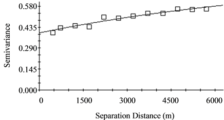 Semivariogram functions have many different forms and shapes and all semivariograms have a zero value at the origin. Some of the semivariogram models for natural resources evaluation were comprehensively discussed by Goovaerts [29] . GS+ [30] was used to obtain the semivariogram model of each observed soil attributes. The proposed model with the least reduced sum of squares (RSS) was selected for spatial autocorrelation process. The study also followed all the procedures described by Robertson [30] , for finding the best fitted semivariogram models.
