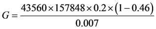 where G means gas in place (SCF), A is reservoir area (acres), h shows reservoir thickness (feet), θ indicates porosity (fractions), Swi is water saturation (fractions) and Bgi is gas formation volume factor (ft3/SCF). NTG in the Figure 10 stands for Net to Gross ratio of thickness