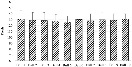 Figure 3. Number of pixels in the β-tubulin bands, as detected by western blot, of the spermatozoa of 10 Nelore bulls, calculated by Image J Software 1.40. The lower the number of pixels, the greater the amount of β-tubulin.