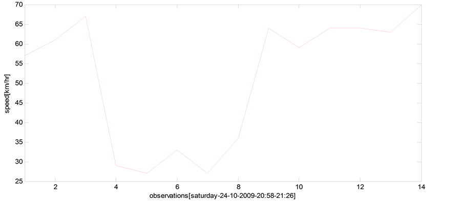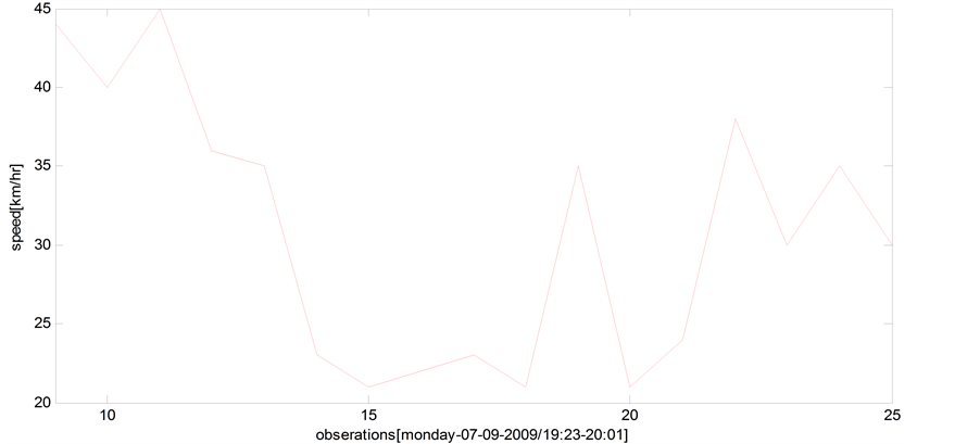 The travel observation data consists of normal and abnormal (accident) travel data. Figure 8(a) and Figure 8(b) illustrate the abnormal conditions in up and download stream in peak hours. However Figure 8(c) illustrates the abnormal condition in no peak hours.