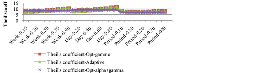 Often the square root of the MSE, RMSE, is considered, since the seriousness of the forecast error is then denoted in the same dimensions as the actual and forecast values themselves. Mean square percentage error (MSPE) is the relative measure that corresponds to the MSE. The more commonly used measure is the root mean square percentage error (RMSPE). Theil’s Coefficient is another statistical measure of forecast accuracy. One specification of Theil’s compares the accuracy of a forecast model to that of a naive model. A Theil’s greater than 1.0 indicates that the forecast model is worse than the naïve model; a value less than 1.0 indicates that it is better. The closer U is to 0, the better the model.