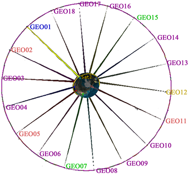 In the problem, the GEO constellation consists of 18 satellites, each of which is equipped with a transmitter which directs its beam to the ground station. The diagram of the projection of the GEO satellites’ beams is shown in Figure 1.