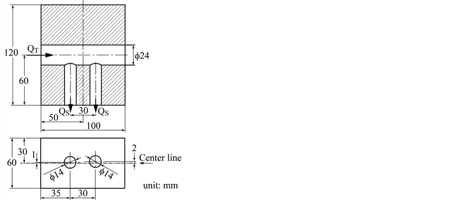 For the axi-aligned and skewed T-junctions in Figure 1(a) and Figure 1(b), respectively, each side branch bifurcates from the trunk at a right angle. The T-junction models were made from silicone resin. For the present study, we selected RT = 12.2 mm and RS = 7 mm as a representative of the radii of the trunk and side branches [18] , respectively. The flow rates through the trunk and side branch are denoted as QT and QS, respectively. The same flow ratio of QS/QT = 0.25 is maintained for both side branches. A spacing of Ls = 30 mm between the two side branches is set for the experiment. This is the minimum distance for which the fluid interference is extremely expected between the side branches because the outer diameter of the side branch is 20 mm. Both the upstream and downstream corners of both side branches are square-edged. For the axi-aligned double T-junction in Figure 1(a), the plane is determined by the axes of both side branches through the axis of the trunk; this is called the median plane. For the skewed double T-Junction, the centers of the two branches have a radial offset of 1 and 2 mm in Figure 1(b), and hence this plane is tilted away from the trunk axis. The offset was chosen as one arbitrary case.
