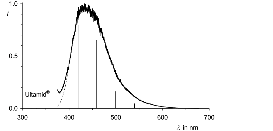 Table 2. Parameter of the sum of Gaussian functions according to Equation (1) for the technical polymers Ultramid® (PA), Luran® (ASA) und Delrin® (POM). The numbers i of the bands are given in brackets, the wavelengths λ in nm and σ in kK (10,000 cm1). The intensities I are derived from the normalized experimental spectrum in the investigated interval.