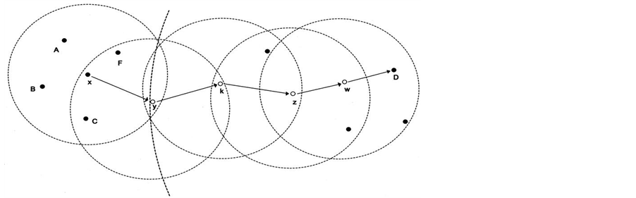 In GSR, source node computes the shortest path to the destination using dijkstra’s algorithm based on distance metrics. It computes the distance from the source to intermediate nodes through which data is to be forwarded [45] . The source node queries for the location and floods the packet to the nodes, which wastes bandwidth. Spatially Aware Routing: It uses the GSR packet forwarding strategy to overcome the problem of recovery strategy in GPSR. It calculates the shortest path using dijkstra’s algorithm. Source sets GSR consists of a list of intermediate nodes embedded in the header of all data packets by a source. Each forwarding node maps the position of its neighbors into graph nodes and chooses the next node having the shortest path from the destination, and then the packet will be forwarded to the next hop, which moves the data closer to the destination [4] .