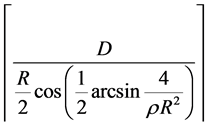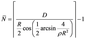 Here the density, ρ, and the radio range, R, are constant. The value of minimum θ satisfying condition 1) stated above can be computed as below