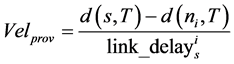 The propagation speed provided on a link connecting source node S and node ni is computed in Equation (7).