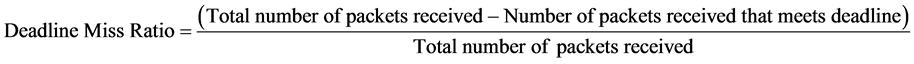 Deadline Miss Ratio (DMR) is measured as the fraction of packets that missed their deadline. It can be expressed as: