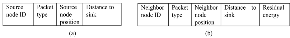Figure 2. (a) Format of HELLO and (b) ACK control packets.